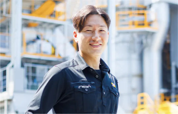 高校卒業後、鳶職として働いていたが、同級生に誘われて西日本アチューマットクリーンに中途入社。最初は大型トラックの運転業務からスタートし、現在は最新設備を備えた「E・フォレスト岡山」の焼却炉オペレーターとして活躍。自然や温泉が好き。穏やかな人柄で、後輩にもやさしく接するのがモットー。